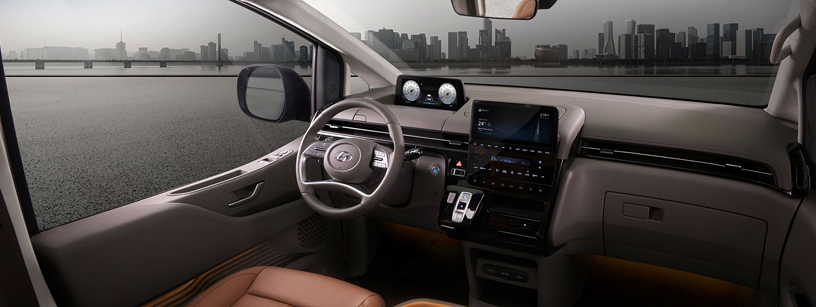Інтер‘єр Натхненний дизайном салону круїзного лайнера, інтер’єр STARIA забезпечує розкішні відчуття та надає розслаблючий простір, запрошуючи вас всередину з відчуттям відкритості та розумними технологіями, які роблять щоденне водіння значно простішим.