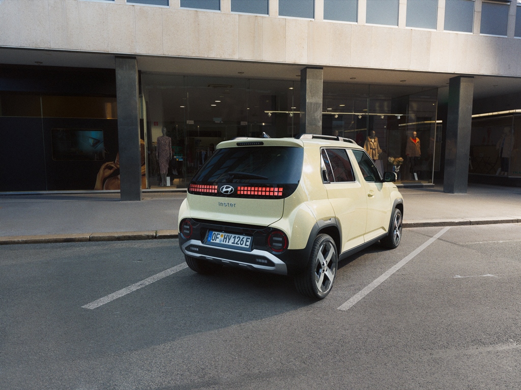 Індивідуальність INSTER сяє крізь світло LED денних ходових вогнів піксельною графікою покажчиків повороту, заднього ліхтаря та бамперів. Клієнти можуть ще більше персоналізувати зовнішній вигляд автомобіля за допомогою світлодіодних проекційних фар і двоколірного екстер’єру з контрастним чорним дахом. Залежно від специфікації будуть запропоновані 15-дюймові сталеві диски з колісними ковпаками, 15-дюймові або 17-дюймові легкосплавні диски.